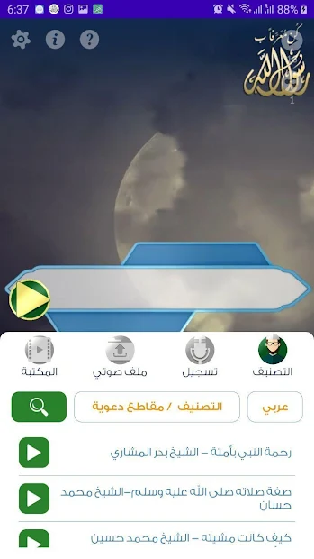 • مكتبة صوتية ضخمة متعددة اللغات للتعريف برسول الله فقط يتم اختيارها واستخراج المقطع في دقائق