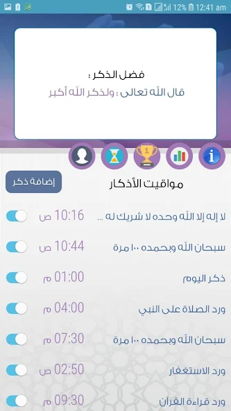 يمكنك اضافة تذكير بأي ورد خاص بك او ذكر او عمل تتقرب به الى الله وتحتاج للتذكير به