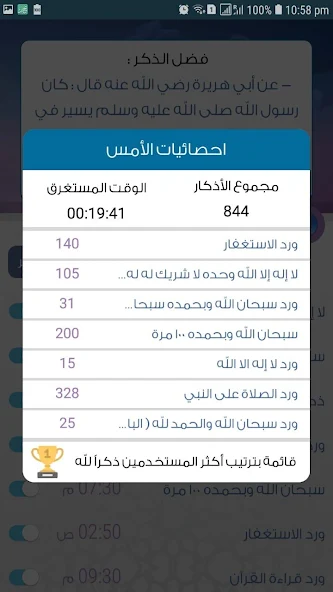 احصائيات يومية للاذكار التي قرأتها