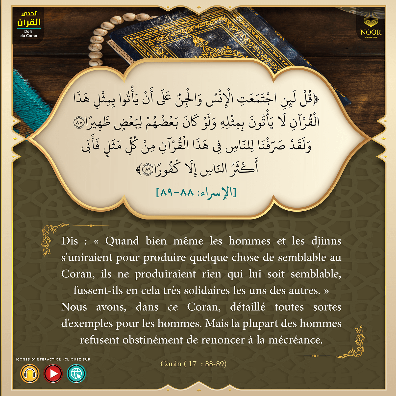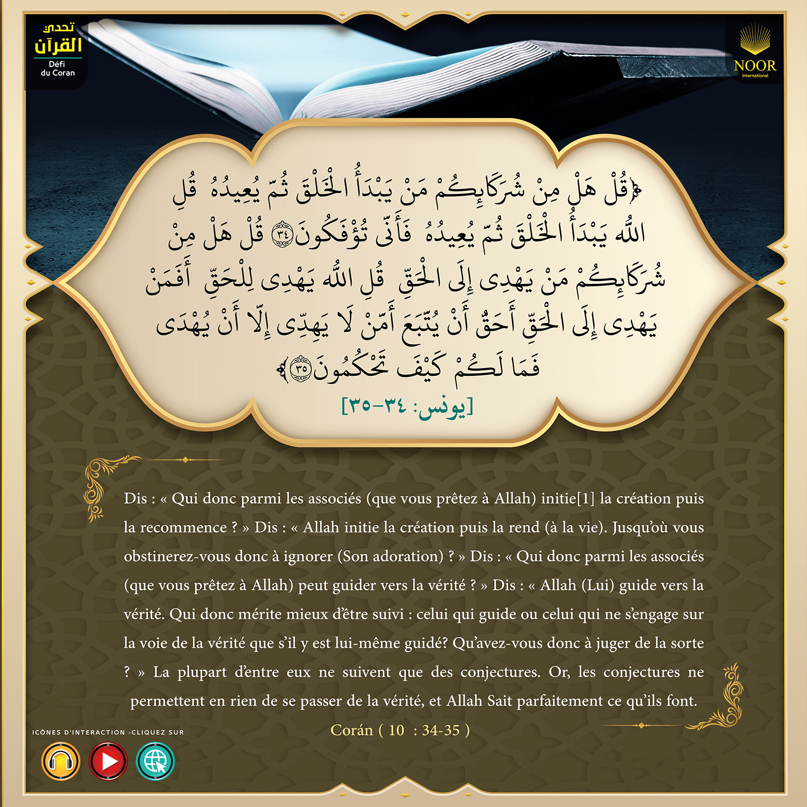 Lisez et télécharger votre exemplaire de la traduction du sens des versets du Noble Coran pour que vous puissiez découvrir les questions auxquelles vous n'arriviez pas à trouver des réponses dans d'autres livres. Rejoignez vite les milliards de personnes qui ont lu ce livre et dont la vie a complètement changé.
