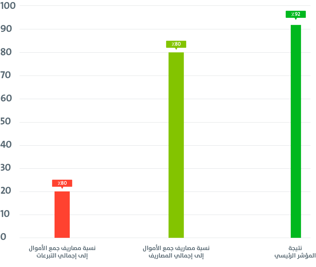 يقيس المؤشر كفاءة إدارة الجمعية في الحصول على التبرعات والإيرادات من الداعمين والممولين بمختلف اتجاهاتهم من خلال ما يلي: