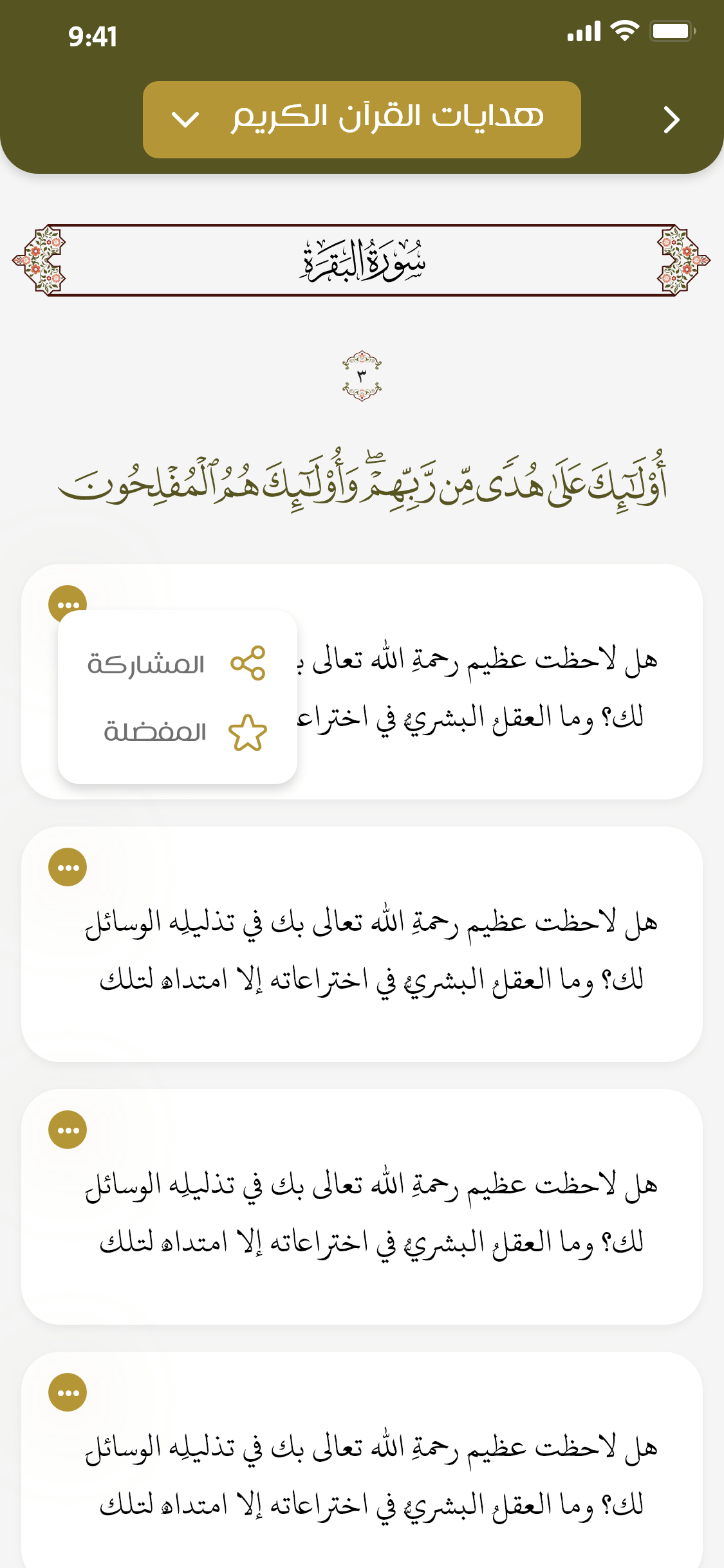 مشاركة الآيات والهدايات "كل هداية على حدة" عبر وسائل التواصل الاجتماعي